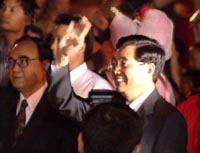 組圖:北京申奧代表團(tuán)7月14日晚載譽(yù)歸來(lái) 2001年07月15日 18:34 ![]() 中共中央政治局常委、中國(guó)國(guó)家副主席、中央軍委副主席胡錦濤(右一),十四日晚在北京首都機(jī)場(chǎng)熱烈歡迎北京申辦奧運(yùn)會(huì)代表團(tuán)從莫斯科載譽(yù)歸來(lái)。 ![]() 中國(guó)國(guó)家副主席胡錦濤十四日晚在北京首都機(jī)場(chǎng)迎接國(guó)務(wù)院副總理李嵐清率領(lǐng)的北京奧運(yùn)會(huì)申辦代表團(tuán)回到北京。