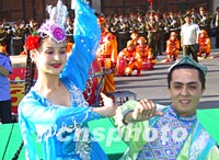 圖:新疆人民載歌載舞慶賀北京申奧成功