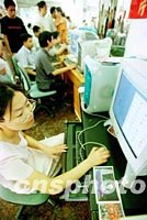 周末,福州郵局的工作人員現場為顧客設計“慶祝申奧成功新聞明信片”,頗受歡迎。中新社圖 鄭祚聲 攝