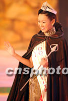 ![]() 芳齡二十二歲的香港學生楊思琦七月十五日一舉奪得2001年香港小姐競選決賽冠軍。中新社傳真 洪少葵 攝