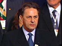 組圖:羅格當選為新一屆奧委會主席 2001年07月16日 21:49 ![]() 七月十六日,比利時人羅格在國際奧委會第112次會議上當選為新一屆奧委會主席,從而成為奧委會一百零七年歷史中的第八位主席。 ![]() 國際奧委會前主席薩馬蘭奇先生,在這一職位上工作了二十一個春秋。七月十六日,比利時人羅格在莫斯科舉行的國際奧委會第112次會議上,當選為新一屆國際奧委會主席,至此實現了薩馬蘭奇先生的一個心愿。