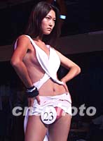 參加在青島舉行的戴安娜2001世界精英模特大賽中國(guó)預(yù)選賽的模特選手,十二日舉行一場(chǎng)別開(kāi)生面的“時(shí)裝創(chuàng)意展示”。圖為一名女模特身穿一款自創(chuàng)性感裝。中新社記者 錢(qián)興強(qiáng) 攝