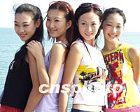 戴安娜2001世界精英模特大賽中國(guó)預(yù)選賽暨金沙灘模特大賽十二日在青島金沙灘進(jìn)行外外景拍攝。圖為青春亮麗的模特新秀。中新社記者 錢(qián)興強(qiáng) 攝