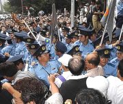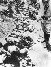 圖文:抗戰(zhàn)勝利56周年 過半日閣員到靖國神社 2001年08月15日 14:19 ![]() 支持和反對(duì)首相小泉參拜靖國神社的團(tuán)體爆發(fā)沖突 ![]() 今天是抗戰(zhàn)勝利56周年,圖為南京大屠殺一幕 中新網(wǎng)東京8月15日消息:在一片怒哮聲中,日本5名閣員在戰(zhàn)敗56周年到靖國神社參拜。在神社外,支持和反對(duì)參拜神社的團(tuán)體爆發(fā)沖突。 日皇明仁夫婦和早已到靖國神社參拜的首相小泉純一郎則出席官方儀式,悼念戰(zhàn)爭(zhēng)死難者,對(duì)戰(zhàn)爭(zhēng)表達(dá)“最深切遺憾”。 供奉著戰(zhàn)爭(zhēng)亡魂的靖國神社今早熱鬧起來,一些老兵和陣亡士兵遺屬,大清早便排隊(duì)進(jìn)入神社內(nèi)園參拜。同樣是一早現(xiàn)身神社的,還有日本農(nóng)水大臣武部勤,他是小泉政府中,第六位來到神社參拜的高級(jí)官員。 另外4名內(nèi)閣閣員和120名國會(huì)議員,今天也來到神社參拜,包括防衛(wèi)特任大臣中谷元、總務(wù)大臣片山虎之助、經(jīng)濟(jì)產(chǎn)業(yè)大臣平沼赳夫、和國家公安暨防災(zāi)特任大臣村井仁。也就是說,連小泉本人在內(nèi)的18名日本內(nèi)閣成員中,超過一半曾到靖國神社。 前首相橋本龍?zhí)珊蜄|京知事石原慎太郎也出現(xiàn)在參拜行列。 今天早上,日皇明仁夫婦和首相小泉純一郎按照傳統(tǒng)在東京武道館出席官方儀式,悼念戰(zhàn)爭(zhēng)死難者。 小泉純一郎在儀式上發(fā)言,承認(rèn)日本對(duì)很多國家,特別是亞洲國家?guī)順O大的傷和痛苦,對(duì)戰(zhàn)爭(zhēng)表達(dá)“最深切遺憾”(deepest regret),并重申日本決心維持和平,并和鄰近保持友好關(guān)系。 日皇明仁說,他真誠的希望戰(zhàn)爭(zhēng)的慘刻不會(huì)重演。日皇并在以菊花砌成的富士山標(biāo)志前默哀及鞠躬。 |