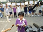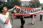 圖文:清華學子到日本駐華使館抗議小泉參拜 2001年08月15日 16:39 ![]() 法新/圖 ![]() 法新/圖 ![]() 路透/圖 中新網北京8月15日消息:今天上午,約30名清華大學學子向日本駐華大使館遞交了抗議書,對日本首相小泉純一郎13日參拜靖國神社一事表示強烈的憤慨。今天是抗戰勝利日本投降五十六周年紀念日。 目擊者說,約有三十多名清華大學學生在日本大使館門前打出“打倒日本帝國主義”的橫幅標語,高唱愛國主義歌曲。 一名不愿透露姓名的女學生高聲宣讀了抗議書:“我們強烈要求日本政府向中國以及其他受過日本侵略的亞洲人民做出正式道歉!” 據中國日報網站報道,這些學生在日本大使館外一邊揮舞著沒有任何記號的空白卡片,一邊高呼“打倒日本帝國主義!”“中國人民萬歲!”“你們(日本)再也不可能欺凌中國了!” 一名姓劉的學生說:“這些空白卡就意味著:對于日本政府的胡說八道,我們覺得沒有什么好說的,他們不值得我們跟他們說話。” 目擊者表示,抗議活動克制、有序。守衛大使館的警察說,根據交通規則他們可以停留十分鐘。 整個示威活動大約進行了十五分鐘,隨后,示威學生乘坐汽車離開了日本大使館。 |