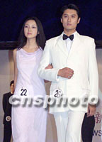 2001年新絲路中國模特大賽山西選拔賽十五日在太原市舉行,來自山西各地的四十七名男女模特選手參加了比賽。圖為選手進行晚裝和正裝展示。中新社記者 錢興強 攝