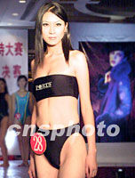 組圖:新絲路中國模特大賽新疆區選拔賽開賽 2001年08月20日 15:29 ![]() “2001年新絲路中國模特大賽‘軒妮杯’新疆區選拔賽”十九日在烏魯木齊市舉行。本次比賽共有來自新疆各地的90名女選手、64名男選手參加。圖為參賽選手進行便裝展示。中新社圖 劉新 攝 ![]() “2001年新絲路中國模特大賽‘軒妮杯’新疆區選拔賽”十九日在烏魯木齊市舉行。本次比賽共有來自新疆的90名女選手、64名男選手參加。圖為參賽選手進行泳裝展示。中新社圖 劉新 攝