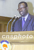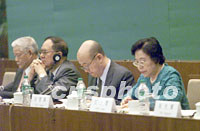 ![]() 聯合國環境規劃署官員巴克利·肯特四日在北京出席“21世紀論壇-綠色與環保2001年會議”,并作演講。中新社記者 滿會喬 攝 ![]() “21世紀論壇-綠色與環保2001年會議”四日在北京開幕,全國政協副主席葉選平(左一)、宋健(左二)、中國林業科學研究院院長江澤慧(右一)等出席開幕式。中新社記者 滿會喬 攝