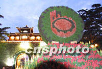 九月的南京玄武湖邊,由鮮花搭成的華商標志在古城墻的映襯下熠熠生輝。中新社圖 鄭萍萍 攝