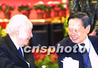 圖:錢偉長和楊振寧在華商大會上 2001年09月16日 20:05 ![]() 第六屆世界華商大會組委會十六日在南京舉行盛大歡迎宴會,全國政協副主席錢偉長和與會的著名美籍華裔科學家楊振寧博士親切交談。中新社記者 李剛 攝 |