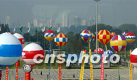 五彩繽紛的汽球高懸南京城,為十七日開幕的世界華商大會增添歡快氣氛。中新社記者 賈國榮 攝