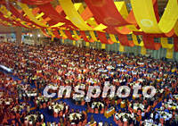 圖:華商大會舉行首次盛大宴會 2001年09月16日 22:38 ![]() 第六屆世界華商大會首次晚宴十六日晚在南京國際會展中心舉行,招待出席此次大會的五千名代表。中新社記者 史利 攝 |
