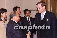 美國貿易代表稱布什是中國入世最堅定支持者 2001年10月18日 20:41 ![]() 中國對外經濟貿易合作部長石廣生十七日在上海國際會議中心會見前來參加2001年亞太經合組織(APEC)會議的美國貿易代表羅伯特·左立克。中新社記者 毛建軍 攝