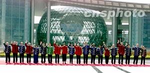 組圖:亞太經(jīng)合組織經(jīng)濟(jì)體領(lǐng)導(dǎo)人合影 2001年10月22日 09:44 ![]() 10月21日,參加亞太經(jīng)合組織第九次領(lǐng)導(dǎo)人非正式會議的經(jīng)濟(jì)體領(lǐng)導(dǎo)人在上海科技館樓前合影。圖為中國國家主席江澤民在合影時向在場記者揮手致意。中新社圖 ![]() 10月21日,參加亞太經(jīng)合組織第九次領(lǐng)導(dǎo)人非正式會議的經(jīng)濟(jì)體領(lǐng)導(dǎo)人在上海科技館樓前合影。中新社圖