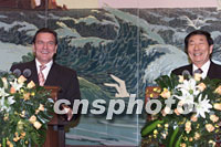 ![]() 國(guó)務(wù)院總理朱镕基與德國(guó)總理施羅德三十一日在北京共同出席中德雙方合作協(xié)議的簽字儀式。中新社記者 滿會(huì)喬 攝 |