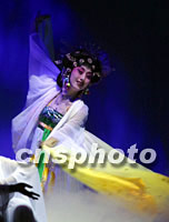 組圖:大型新編京劇《中國貴妃》在上海公演 2001年11月02日 18:42 ![]() 上海國際藝術節(jié)主打節(jié)目大型新編京劇《中國貴妃》十一月二日上演,它敘述了大唐天子李隆基與楊貴妃的凄美愛情。中國著名的京劇表演藝術大師梅蘭芳之子梅葆玖在劇中主演楊貴妃。中新社記者 潘索菲 攝 ![]() 大型京劇《中國貴妃》十一月二日在上海公演,其精湛的舞美和宮廷樂舞為新編京劇注入了別樣情趣。圖為貴妃霓裳羽衣舞。中新社記者 潘索菲 攝