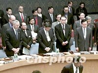 圖:聯合國安理會向紐約墜機死難者致哀 2001年11月13日 10:01 ![]() 美東時間十二日上午,聯合國安理會召開反恐外長會議。會議開始時,安理會全體起立默哀一分鐘,為當日上午紐約肯尼迪機場飛機墜毀事件中的遇難者表示深切哀悼。中新社記者 陳建 攝 |