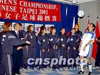 圖:臺北市長馬英九為中國臺北女足壯行 2001年11月30日 09:38 ![]() 臺北市長馬英九11月29日一身足球運動裝,親自為參加亞洲杯女足賽的中國臺北隊壯行。中新社記者 任晨鳴 攝 |