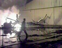 圖:以發(fā)動(dòng)對(duì)巴勒斯坦的報(bào)復(fù)行動(dòng) 2001年12月04日 15:55 ![]() 以色列三日向加沙地區(qū)發(fā)射十四枚導(dǎo)彈,對(duì)此前以境內(nèi)發(fā)生的一連串爆炸事件進(jìn)行報(bào)復(fù),巴勒斯坦民族權(quán)力機(jī)構(gòu)主席阿拉法特的住所、辦公室及兩架直升機(jī)在襲擊中被摧毀。圖為消防人員在被摧毀的直升機(jī)前滅火。 |