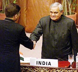 巴總統在南亞首腦會向印總理伸出友誼之手(圖) 2002年01月05日 15:45 ![]() 中新網北京1月5日消息:巴基斯坦總統穆沙拉夫在剛剛揭幕的南亞區域合作聯盟首腦會議上發表演說后,主動與印度總理瓦杰帕伊握手。 巴基斯坦總統穆沙拉夫發表演說指出,所有與會代表地位必須平等,各國要尋求長遠的辦法,解決地區內事務爭端.他還說,巴基斯坦是恐怖主義的受害者,并重申他已準備好同印度展開對話。他在結束發言之前,主動提到與印度的緊張關系,并表明愿意隨時與印度展開和平對話以及愿意伸出真正友誼之手,然后他就步向瓦杰帕伊與他握手。 而印度總理瓦杰帕伊則感謝穆沙拉夫主動向他伸出友誼之手,并呼吁雙方停止無意義的暴力沖突。他稱印度一直積極尋求同巴基斯坦和談,但依然受到襲擊。他還說,印度在近二十年間不斷受國際恐怖主義侵襲,全球必須合作打擊恐怖主義。 印巴關系因為印度國會遇襲事件而惡化,雙方均在邊境部署軍隊并不時交火。印度總理瓦杰帕伊要求巴基斯坦采取強硬手段對付境內極端份子,否則拒絕與穆沙拉夫直接對話。兩國領袖昨晚在尼泊爾皇宮參加晚宴期間沒有直接接觸。 |