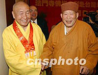 組圖:法門寺佛指舍利赴臺供奉新聞發布會 2002年02月22日 09:54 ![]() 法門寺佛指舍利赴臺供奉新聞發布會,日前在西安喜來登大酒店舉行,中國佛教協會等有關人士和臺灣佛教人士以及來自大陸、港臺的眾多記者參加了發布會。圖為臺灣惟覺法師與法門寺凈一方丈在發布會上。中新社記者 錢興強 攝 ![]() 法門寺佛指舍利赴臺供奉新聞發布會,日前在西安喜來登大酒店舉行,中國佛教協會等有關人士和臺灣佛教人士以及來自大陸、港臺的眾多記者參加了發布會。圖為臺灣星云法師為賓客簽書。中新社記者 錢興強 攝