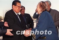 圖:喬石參觀吳作人精品展 2002年03月12日 18:25 ![]() 前全國人大常委會委員長喬石12日參觀在北京中華世紀壇舉辦的“吳作人和他的朋友--吳作人精品暨吳作人國際美術基金會接受捐贈作品展”,與著名藝術教育家吳作人先生的夫人肖淑芳親切握手。中新社記者 張勤 攝