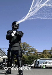 圖文:日本用"網槍"把足球流氓一"網"打盡 2002年04月05日 14:21 ![]() 大分縣警察總部警員身穿防護服,發射“網槍”(共同社圖) 本世界杯專稿版權歸中新網與TOM網站共同擁有。如需刊用,務經雙方正式書面授權。 中新網北京4月5日消息:世界杯比賽主辦地之一的日本大分縣警察總部世界杯警備對策室4日公開了可以制服因興奮而到處胡鬧的足球流氓的“網槍”。 據共同社報道,在大約5米處發射“網槍”后,強化尼龍制成的網就向四方擴展,展開面積大約5米,可以捉住2、3人。據說“就象落網的魚,自己絕對掙脫不出來。”“網槍”是國產的,每發射一次花費2萬日元。 “網槍”計劃被設置在舉行比賽的大分綜合體育場(大分市)以及附近車站的周圍。