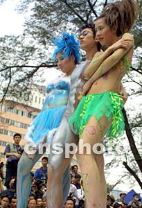 組圖:廣州街頭展示人體彩繪吸引眾多攝影發燒友 2002年04月06日 18:03 ![]() 廣州某攝影器材城為吸引顧客,六日上午在門口公開展示人體彩繪,吸引上百名發燒友前來拍攝。中新社圖 柯小軍 攝
