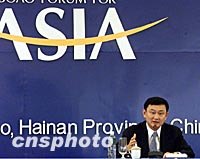 ![]() 博鰲亞洲論壇首屆年會十二上午在海南博鰲開幕,泰國總理他信在開幕式上發(fā)表主旨演講。中新社記者 滿會喬 攝