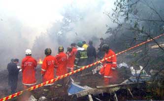 組圖:國航客機在韓國墜毀 韓國方面搶救生還者 2002年04月15日 14:15 ![]() 圖為4月15日在韓國墜毀的中國國航767客機殘骸。 ![]() 圖為韓國救援人員在墜機現場。 ![]() 圖為墜機現場。 ![]() 生還者被送往醫院后家屬前來探望。 ![]() 救援人員從墜毀的CA-129客機上找到的生還者。