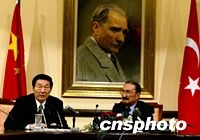 朱镕基:共同打擊“東突”符合中土兩國(guó)根本利益 2002年04月16日 21:05 ![]() 朱镕基總理4月16日在安卡拉與土耳其總理埃杰維特會(huì)談后,就中土共同打擊“東突”等問(wèn)題共同會(huì)見記者。作者:岳堯