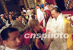 ![]() 臺灣名人陳履安之子日前在京新婚,來自尼泊爾、臺灣等地的佛徒趕到北京,參加陳宇廷和藏族姑娘央金拉姆的婚禮,爭相為新婚人送哈達(dá)。作者:王麗南