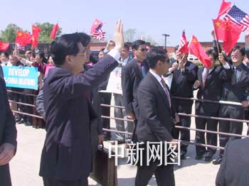圖文:胡錦濤抵達華盛頓 美國助理國務卿等迎接 2002年05月01日 09:38 ![]() 當地時間4月30日上午11時,胡錦濤副主席乘專機抵達美國首都華盛頓,繼續其對美國的正式訪問。圖為胡錦濤副主席攜夫人步下舷梯。中新社 徐德金攝 ![]() 胡錦濤面含笑容迎向歡迎的人群,頻頻揮手致意。中新社 徐德金攝 ![]() 胡錦濤在機場受到美方官員、中國駐美使館工作人員和華人華僑、留學生代表的熱烈歡迎。中新社 徐德金攝 中新網華盛頓四月三十日電(記者徐德金)中國國家副主席胡錦濤和夫人今天上午十一時許乘專機抵達美國首都華盛頓。在安德魯空軍機場,胡副主席受到美方官員、中國駐美使館工作人員和華人華僑、留學生代表的熱烈歡迎。 到機場迎接胡錦濤副主席的美方官員有助理國務卿凱利、安德魯空軍基地司令等。美國駐華大使雷德陪同胡副主席一行從紐約同機抵達。 陽光朗照,春風和煦,胡錦濤副主席和夫人步下舷梯、踏上紅地毯。中國駐美使館工作人員向胡副主席和夫人敬獻了鮮花。在熱烈的歡迎聲中,胡副主席面含笑容迎向歡迎的人群,頻頻揮手致意。 胡錦濤副主席是應美國副總統切尼的邀請,于四月二十七日抵達夏威夷開始對美國進行訪問的。 據悉,在華盛頓訪問期間,胡錦濤副主席將與布什總統、切尼副總統、鮑威爾國務卿以及國會議員等進行會見、會談;還將出席美中關系全國委員會等八個團體舉辦的晚餐演講;會見華人華僑、留學生和中資機構的代表。