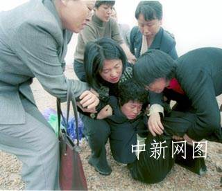 組圖:5月13日大連空難遇難者家屬舉行海祭 2002年05月13日 20:28 ![]() ![]() 圖為張豐儀的母親姜曉云悲痛難抑,暈倒在海邊。 ![]() 張廷家生前是東北電業管理局第二工程公司的工程師,圖為他的同事在大連海濱撒花祭奠 大連海事大學附屬小學五年級學生張豐儀和爸爸張廷家均在“五·七”空難中不幸罹難。五月十三日,張豐儀的母親姜曉云等親屬到飛機失事海域為他們舉行海祭。中新社圖 王麗南 攝
