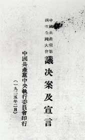 圖文:中國共產黨第四次全國代表大會 2002年05月14日 17:24 ![]() 圖為大會通過的決議案及宣言 1925年1月11日至22日,中國共產黨第四次全國代表大會在上海召開。出席大會的有陳獨秀、蔡和森、瞿秋白、周恩來、彭述之、張太雷、陳潭秋、李維漢、李立三等20人,代表黨員994人。共產國際代表維經斯基參加了大會。 大會的中心議題是:如何加強黨對日益高漲的革命運動的領導,以及在宣傳工作、組織工作和群眾工作方面如何準備迎接大革命的高潮。陳獨秀主持了會議,并代表第三屆中央執行委員會向大會作工作報告。維經斯基在會上作了關于世界共產主義運動狀況的報告。出席1924年6、7月間在莫斯科召開的共產國際第五次大會的中共代表,向大會作了關于共產國際五大的情況和決議精神的報告。蔡和森、瞿秋白、周恩來等先后在大會上講話。各區、各地方委員會的代表向大會報告本地區的工作情況。 大會回顧了三大以來黨的政策制定和實施的情況,肯定了上年5月中央擴大會議對黨的工作中右傾錯誤的批評,重新規定了中國共產黨同國民黨合作以及關于工人運動、農民運動等方面的一些方針,指出了無產階級領導權和工農聯盟的重要性。大會圍繞著當前的中心工作,通過了《中國共產黨第四次全國代表大會宣言》、《中國共產黨第二次修正章程》和《對于出席共產國際第五次大會代表報告之議決案》、《對于共產國際執行委員會代表報告世界共產主義運動狀況之議決案》、《對于同志托洛茨基態度之議決案》、《對于中央執行委員會報告之議決案》、《對于民族革命運動之議決案》、《對于職工運動之議決案》、《對于農民運動之議決案》、《對于青年運動之議決案》、《對于婦女運動之議決案》、《對于宣傳工作之議決案》、《對于組織問題之議決案》等1 1個重要決議。大會閉幕前一天,正值列寧逝世一周年紀念日,大會為此發表了《對于列寧逝世一周年紀念宣言》。 大會選出了新的中央執行委員會。新當選的中央執行委員共9人:陳獨秀、李大釗、蔡和森、張國燾、項英、瞿秋白、彭述之、譚平山、李維漢;候補執行委員5人:鄧培、王荷波、羅章龍、張太雷、朱錦堂。在隨后舉行的中央執行委員會第一次會議上,陳獨秀被選為中央總書記兼中央組織部主任,彭述之任中央宣傳部主任。張國燾任中央工農部主任,蔡和森、瞿秋白任中央宣傳部委員,以上五人組成中央局并駐中央局。 中共四大的主要缺點和不足是:雖然提出了領導權的問題,但對于如何爭取領導權,缺乏具體明確的方針,只講對群眾運動的領導權,而完全忽視了對政權和武裝力量的領導權。提出了農民是革命同盟軍的問題,但沒有提出土地革命這一解決農民問題的根本思想。