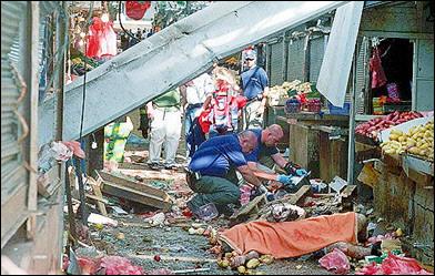 以色列內(nèi)坦亞爆炸3人死亡 以軍開進(jìn)拉馬拉 2002年05月20日 08:08 ![]() 以色列北部海濱城市內(nèi)坦亞市中心的一個集貿(mào)市場發(fā)生自殺式炸彈爆炸。(法新圖) 中新網(wǎng)北京5月20日消息:耶路撒冷訊,以色列北部海濱城市內(nèi)坦亞19日下午發(fā)生的自殺式炸彈爆炸中,死亡人數(shù)目前已經(jīng)上升至3人,另外還有至少50人受傷,其中8人傷勢嚴(yán)重。 以色列電視臺報(bào)道說,爆炸發(fā)生在當(dāng)?shù)貢r間16時25分前后(北京時間21時25分),爆炸地點(diǎn)為內(nèi)坦亞市中心的集貿(mào)市場。巴勒斯坦激進(jìn)組織哈馬斯已經(jīng)宣布對此次襲擊負(fù)責(zé)。 美聯(lián)社報(bào)道說,這名發(fā)動自殺式炸彈襲擊的巴勒斯坦人身穿著以色列陸軍軍服,于周日混入內(nèi)坦亞市中心的一個集貿(mào)市場。 幾個小時后,巴勒斯坦目擊者稱,一些以軍坦克開進(jìn)了西岸城市拉馬拉。而以軍發(fā)言人則稱,開進(jìn)拉馬拉的只是幾輛裝甲運(yùn)兵車而非坦克。這些部隊(duì)短時間內(nèi)即撤出了該城市,沒有傷及巴勒斯坦人。