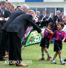 法國等5個世界杯參賽國相繼到達日本最后備戰 2002年05月21日 15:07 ![]() 丹麥代表隊抵達和歌山。在和歌山集訓地向丹麥選手贈送足球繪畫的幼兒園小朋友(共同社)