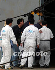 圖:專家檢查打撈起的飛機殘骸 2002年05月28日 18:30 ![]() 五月二十八日,臺灣飛行安全委員會陪同美國專家到澎湖馬公空軍基地檢查打撈起的飛機殘骸。中新社記者 任晨鳴 攝