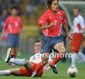 圖:韓國隊6號柳相鐵為韓國射入第二進球