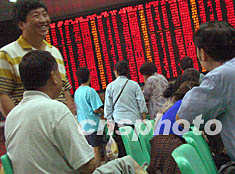 圖:深滬股市受國有股減持停止影響大幅攀升 2002年06月24日 16:19 ![]() 受國務院“停止利用國內證券市場減持國有股”決定的影響,二十四日中國深滬股市跳空9%高開,其后,全線飄紅保持至收盤。當日北京市各證券營業大廳里人聲鼎沸,股民奔走相告,準備乘利好消息早日獲利。中新社記者 鄒憲 攝