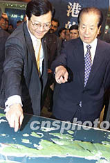 ![]() 香港特別行政區舉行的“回顧過去 展望未來”展覽會二十八日在北京開幕,國務院副總理錢其琛、國務院港澳辦主任廖暉、香港特別行政區政務司司長曾蔭權等認真觀看香港未來發展沙盤模型。滿會喬 攝