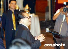 ![]() 江澤民鼓勵中央駐港機構和中資機構代表要努力工作。七月一日,江澤民主席在香港君悅酒店會見中央駐港機構和中資機構代表并鼓勵他們要努力工作。中新社傳真 潘索菲 攝