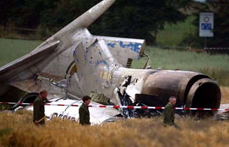 圖:一位德國警察在墜毀的圖-154客機附近搜尋 2002年07月02日 14:50 ![]() 德國當?shù)貢r間7月1日夜(北京時間2日晨),一架DHL公司的波音757貨機和俄羅斯圖-154客機在德國巴登-符騰堡州于伯林根鎮(zhèn)上空相撞并墜毀,至少已造成71人死亡。圖為一位德國警察在墜毀的圖-154客機附近搜尋。(春風)