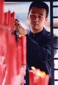 拍攝花絮:柳云龍靈山大佛前祈禱(多圖) 2002年07月11日 15:50 ![]() 現場圖片 ![]() 無錫有座靈山,靈山大佛為天下第一高立佛,高達88米。相傳佛陀涅槃后千年,玄奘大弟子窺基帶著佛祖遺物——菩提心燈至靈山傳法,遂神燈成為靈山鎮山之寶。因此緣,再四百年,佛祖百丈金身終現靈山山巔。我們的景就選在這個空靈而神奇的地方。 全組清早五時從駐地出發,沐著淡淡的薄霧前行,偶爾有幾簇青蔥的仙人樹映入眼簾,樹上花紅似火。事先沒有任何預兆,天下突然起了大雨,我們是在雨中進入祥符寺的,鐘六一的重頭戲將在這里完成。由于雨太猛烈,劇組無法工作,所有的人在殿前靜靜地候著。香燭忽明忽暗,山門口的佛背身而立,呢喃的頌經聲遠遠傳來,青煙裊裊濾去塵世的躁動,勾勒歲月的嬗變。雨稍小了一點,劇組開始拍攝,柳云龍飾演的黑社會老大鐘六一是個身世復雜經歷奇異終日徘徊在矛盾與痛苦中的人物,當他曾經輝煌、磨難、罪惡直至眾叛親離的一生走到盡頭的時候,鐘六一孤獨地找尋寺廟,似乎這里有種力量在召喚著他。柳云龍換上一身墨色的行頭,支著黑傘,出現在鏡頭前,蒼白的臉頰裸露青茬,和著雨珠同冰冷。他徑直走入佛殿,跪拜佛前,將臉深埋蒲團,久久未起。因為雨的淅瀝,因為柳云龍的專注,大家一時竟分不出是戲里還是戲外。一名僧者掠過鐘六一,在他身邊低語了一番,鐘六一呆滯的雙眼突然跳動了一下,福田寬廣,也許這個或無情或深情的焦灼靈魂在此刻頓悟——往事隳飛煙滅,一切皆成夢魘。 大家渾身濕透,有雨水更有汗水。如果說影視是切換的張力的藝術,那么,跟隨角色的足跡,演員循著創作進程可以發掘存在的原本,表達的支點。進入拍攝后期的柳云龍極大地沉浸在人物的狀態里,桀驁不馴,獨來獨往,演員的幸福與痛苦于第一自我和第二自我的交替中穿插著,這是創造賦予創造者的生命。 柳云龍在鐘六一的起落中脫胎換骨,完成著作為演員的使命。