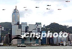 圖:香港政府飛行服務(wù)隊(duì)送別黑鷹迎新美洲豹 2002年08月15日 21:05 ![]() 香港政府飛行服務(wù)隊(duì)的九架直升機(jī)8月15日在晴朗的香港維多利亞港灣上空列隊(duì)緩緩飛行,向即將退役的黑鷹直升機(jī)致敬。該飛行隊(duì)將由新型超級美洲豹直升機(jī)替換服務(wù)了十二年的黑鷹直升機(jī)。任晨鳴 攝