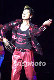 ![]() 有“亞洲舞王”之譽的香港歌星郭富城目前正在日本三個城市舉行巡回演唱會。圖為郭富城十六日晚在東京演唱會上表演勁歌勁舞。