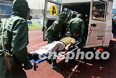 圖為武警總隊處置生化恐怖襲擊緊急救護