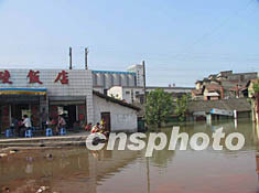 日前,湖南洞庭湖水的上漲,使位于該湖與長江交叉處的城陵磯鎮多處被淹。一家小飯店僥幸逃脫被全淹的命運,生意依然紅火。中新社圖 白祖偕 攝