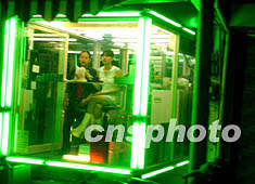 圖:臺灣東部置身在玻璃房中的檳榔妹