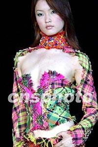 意大利著名服裝名牌“蓋·馬帝洛”,八月首次在北京舉行精品時裝展示會。圖為模特展示多姿多彩的女裝作品。錢興強 攝